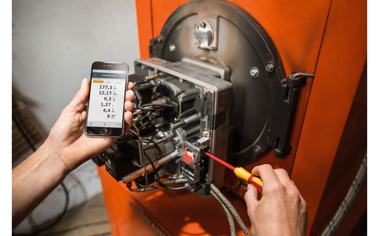 对于您的日常操作来说,该仪器经过完全重新设计的操作方法也同样重要:测量仪器的操作以及读数的显示和记录都是通过您智能手机上的testo 330i App以无线方式完成。烟气分析仪可以从距离远达5米的地方,通过蓝牙方便地进行控制。此外,这也意味着您可以在需要时随时获取系统的烟气数值。一旦测量完成,您可以在协议中添加评论或照片,并通过电子邮件将其发送给您的客户或办公室。
